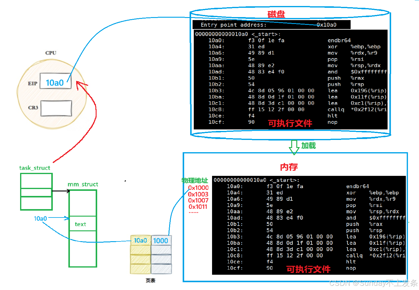 •把之前编译时没确定的地址,全部填上真实的虚拟地址。从此所有跳转、访问变量都有真实地址。