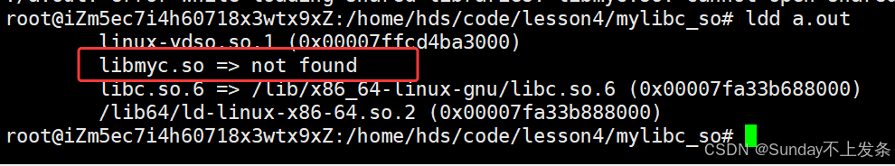此时我们的动态库不在库运行搜索路径中,即系统并不知道我们的动态库在哪里。