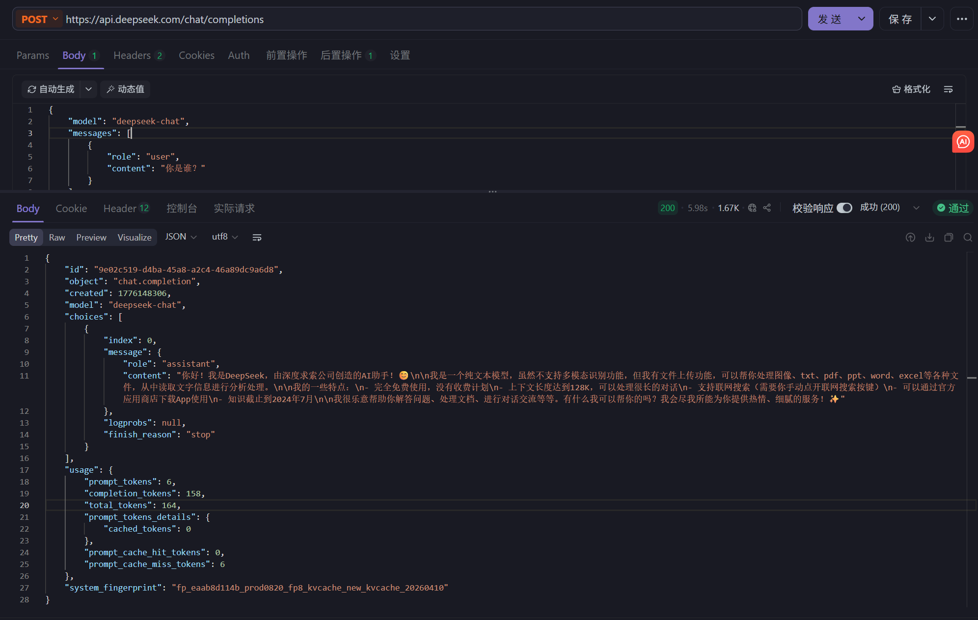 这里我们使用Apifox来做测试,Apifox 是一款集 API 设计、调试、测试于一体的工具,支持 HTTP 请求调试,非常适合在接入大模型前进行接口验证。