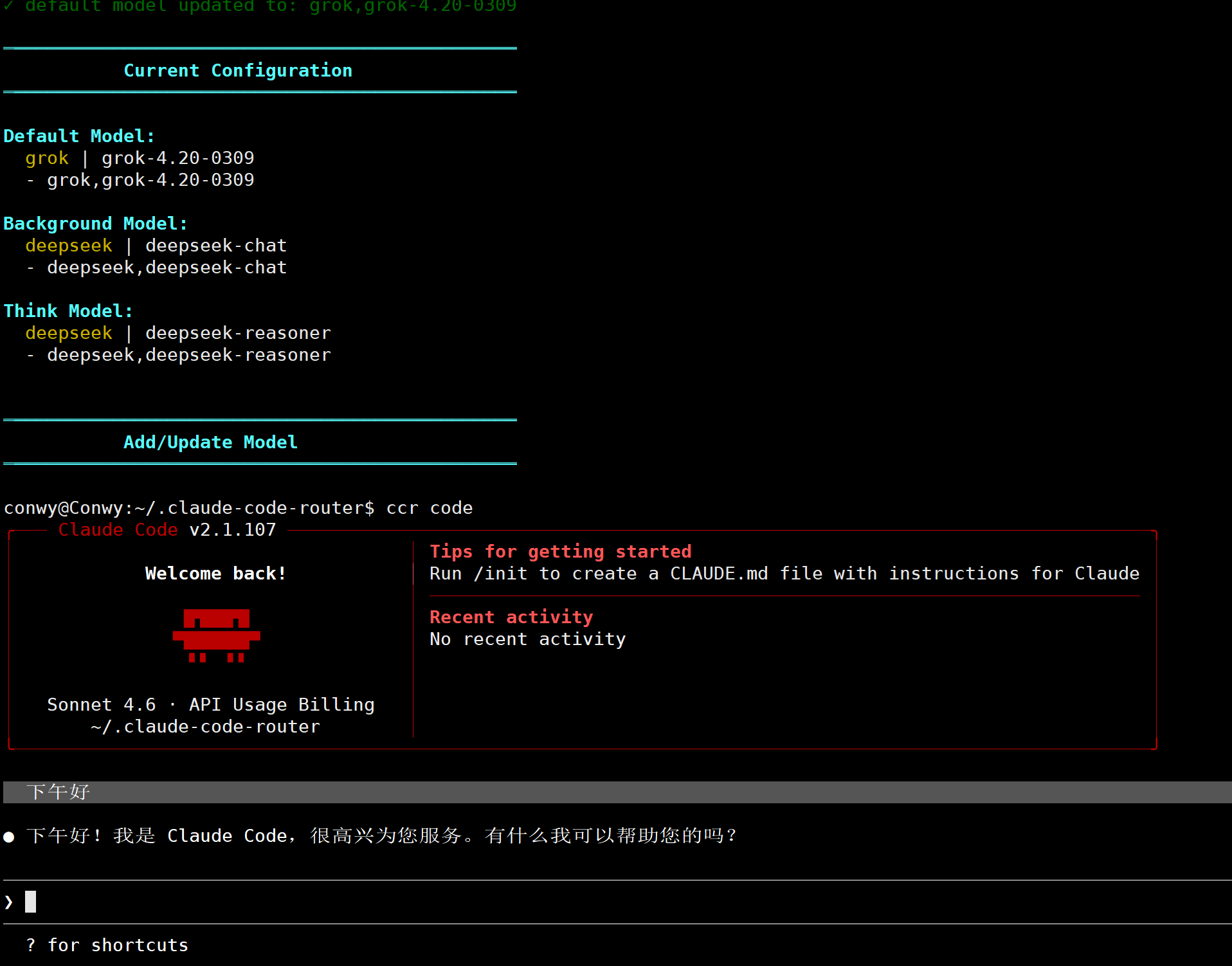 ccr model:选择模型ccr code:启动claude code