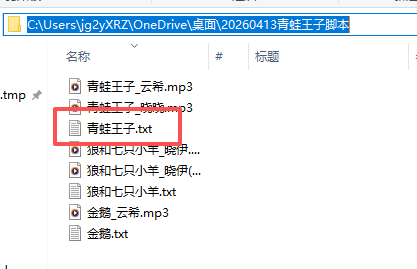 TEXT_FOLDER = Path(r"C:\Users\jg2yXRZ\OneDrive\桌面\20260413青蛙王子脚本") # 修改为你的文件夹路径