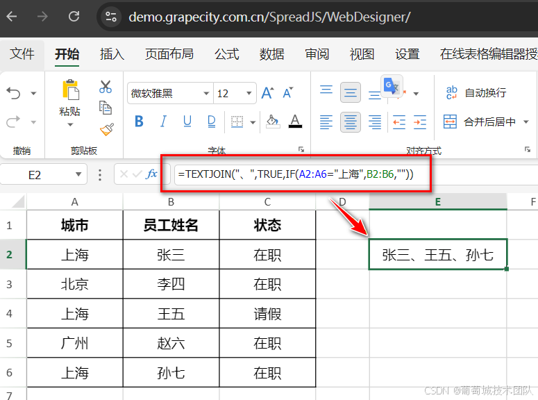 IF部分在内存中过滤:如果是"上海",保留名字,否则变为空""。TEXTJOIN介入,自动无视那些空值,只把"张三、王五、孙七"缝合在一起。- 注:低版本 Excel 需按
