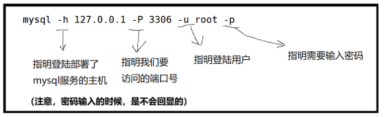 ② 如果没有写 -P 3306 默认是连接3306端口号