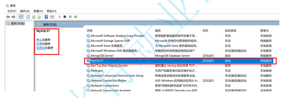 ② 通过下图左侧停止,暂停,重启动按钮进行服务管理