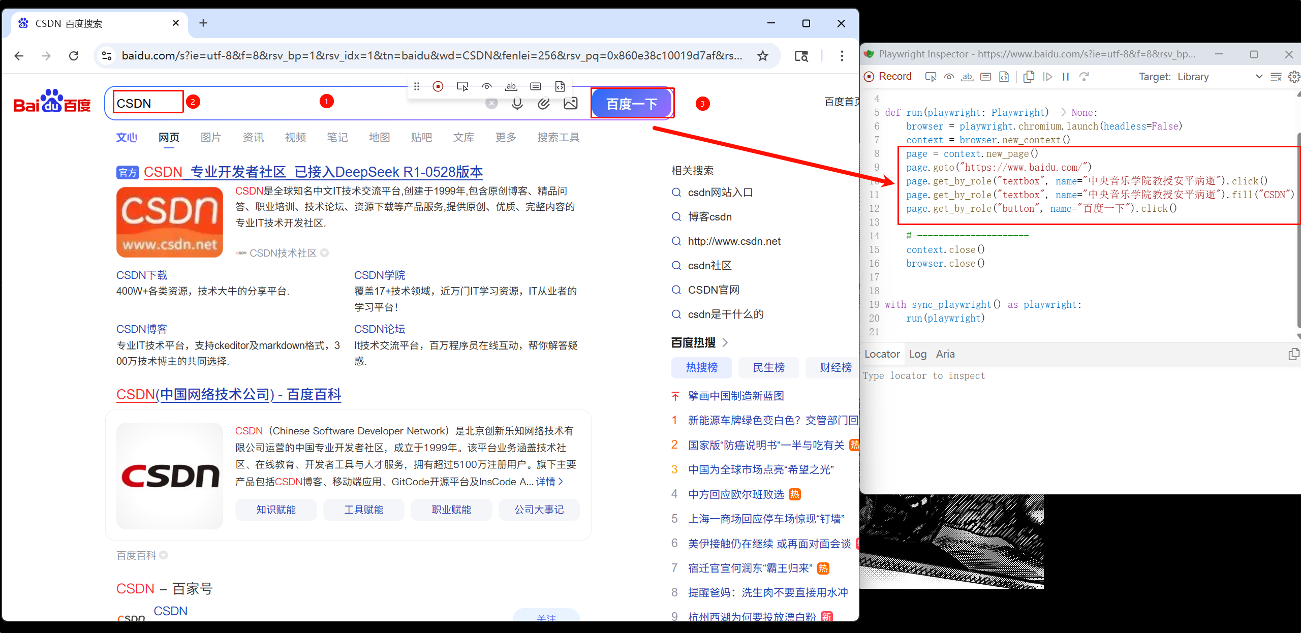 将录制代码保存到文件 | playwright codegen -o test.py https://www.baidu.com |