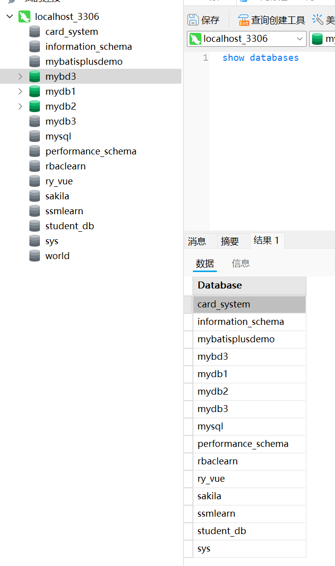 1. show databases; ‐‐ 查看所有的数据库