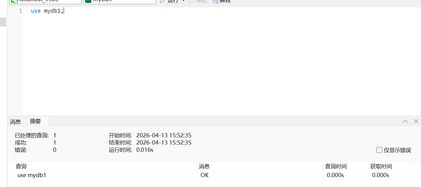 创建一个名称为mydb1的数据库。