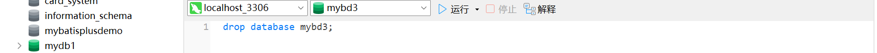 drop database 数据库名称; --删除数据库
