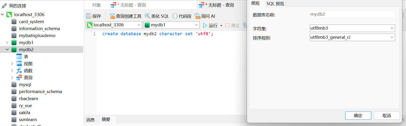 创建一个使用utf8字符集的mydb2数据库。