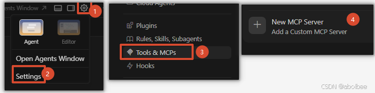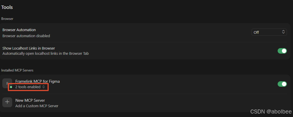 打开settings,找到 Tools & MCPs,添加MCP Sever