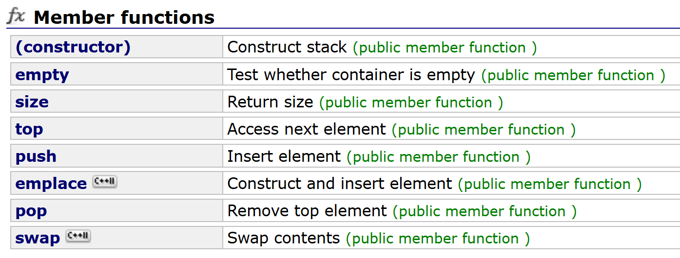 详见文档 :https://legacy.cplusplus.com/reference/stack/stack/?kw=stack