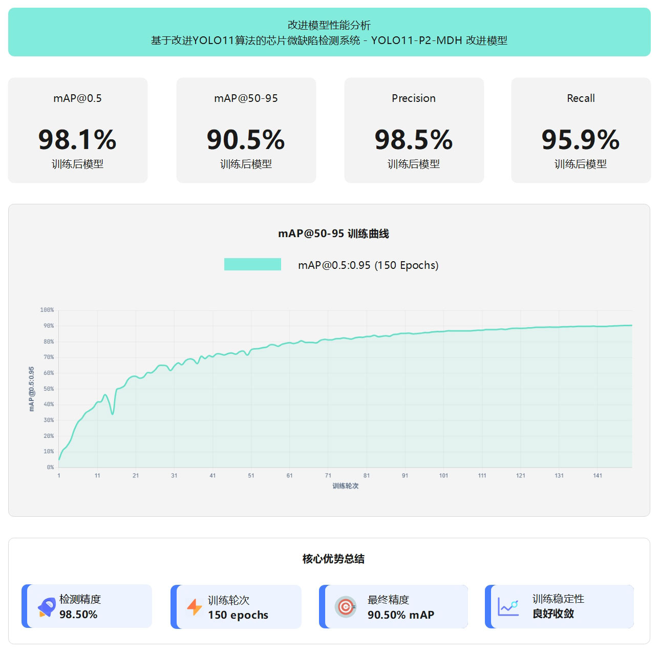 - 最终状态:最佳模型第150轮,mAP@50-95达90.5%