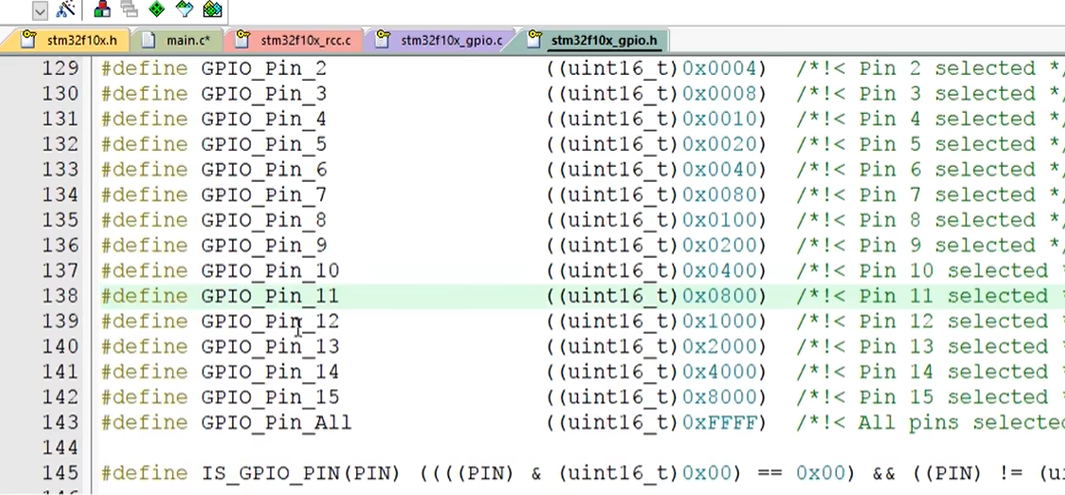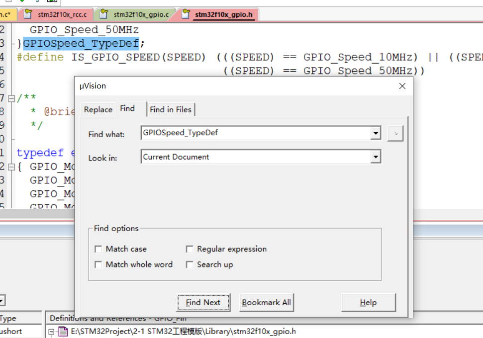 然后看一下这个 GPIO Pin 的说明,他说这个参数在 GPIO Pin 是 define 里面定义的,我们还是一样,选中, Ctrl + F, Find Next 可以看到这里有个宏定义的列表