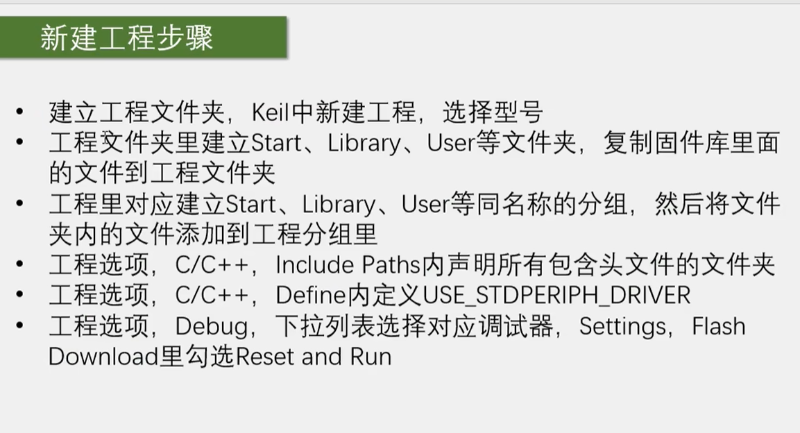 又因为 C8T6 的 Flash 是 64K, 所以选择 MD 的启动文件。这就是 STM32F1 系列的型号分类和启动文件的选取哈。接下来我们再总结一下新建工程的步骤。