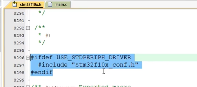 意思是如果你定义了使用标准外设驱动这个字符串,下面这个 include conf 点.h 语句才有效,所以我们还需要复制一下这个字符串。