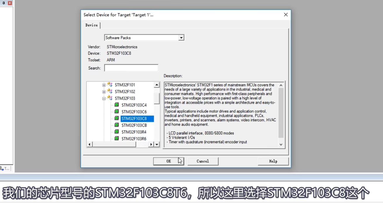 器件型号:我们的芯片是STM32F103C8T6