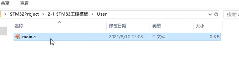 接下来我们再新建一个 main 函数,看看这个工程是不是可行啊。我们打开工程文件夹,然后新建一个文件夹,叫做 user,我们的 main 函数就放在这个文件夹里。