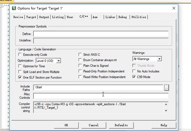 第四步是工程选项, C、 C++、 Include、 Paths 类,声明所有包含头文件的文件夹。这一步是因为你这个 start、 library 等文件夹是你自己建的, Keil 软件它并不知道,所以你要用自己文件夹里面的点 h 文件,就必须声明一下这个路径。那最好就是你自己建的所有文件夹都声明一下哈,这样就不会出现点 h 文件找不到的问题了。