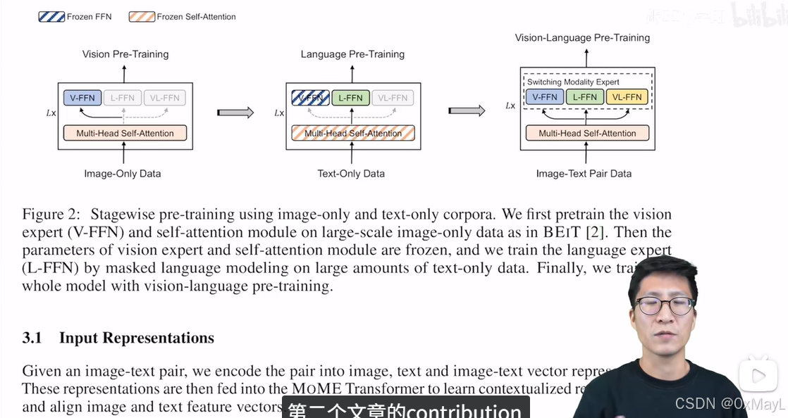 - 模型:MOE的架构,只不过MOE换成模态的专家FFN,有一个负责模态融合FFN(VL-FFN)