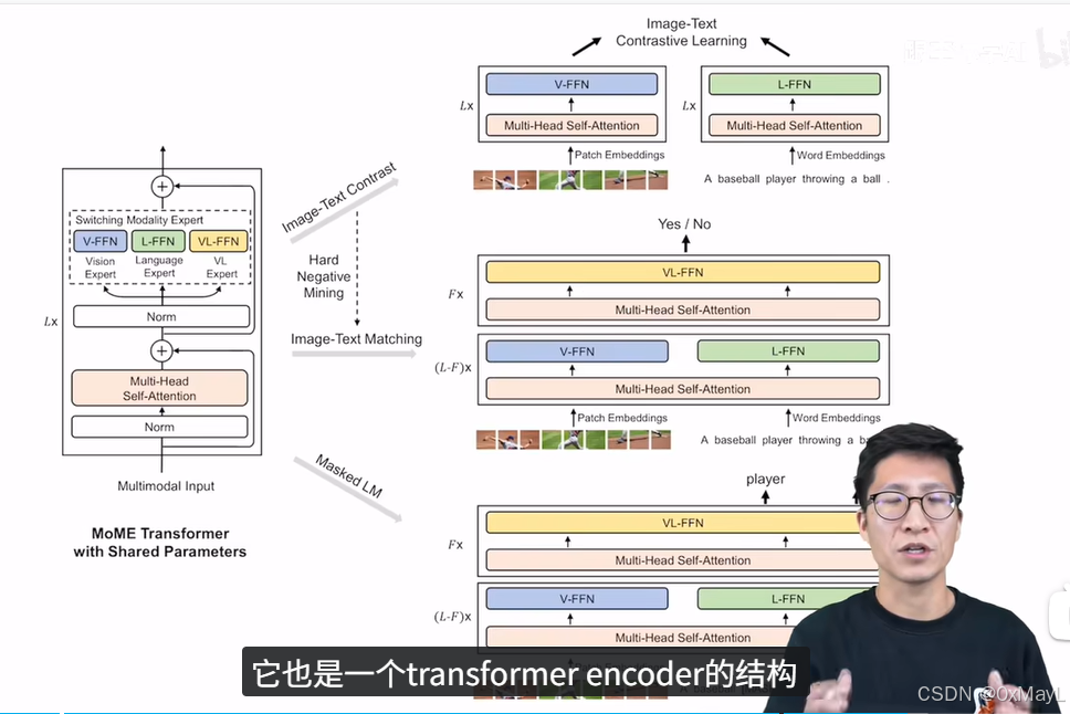 - 模型:借鉴了VLMO的思路,多一个文本模态的解码器,不同模态的编码器架构有一点不同,但是关键是共享大多数参数 。