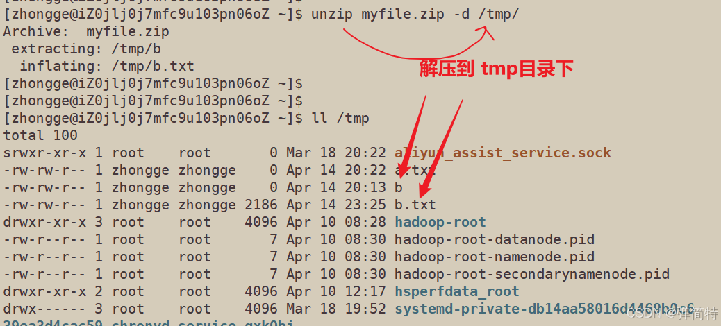 unzip myfile.zip -d /tmp/ # 解压到指定目录