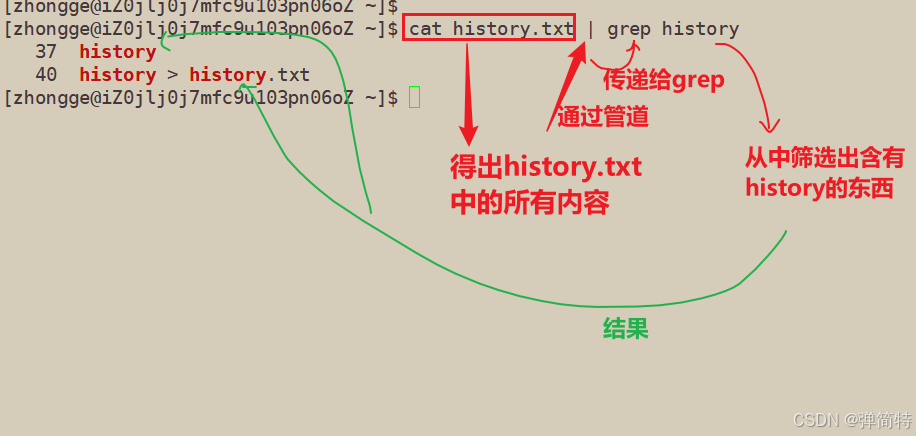 history > history.txt # 把历史命令记录写到 history.txt 里(原来内容没了)