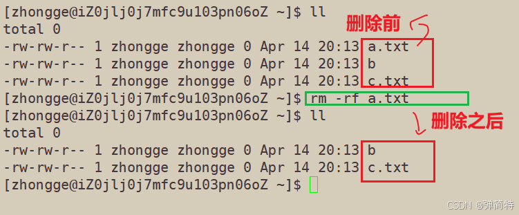 删除文件和删文件夹一样,都是 rm -rf 文件名。区别是删单个文件不用 -r,但习惯性加上也没事。