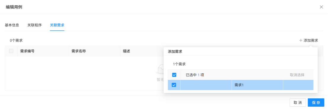 关联程序后点击关联需求可进入关联需求页面,如下图所示。