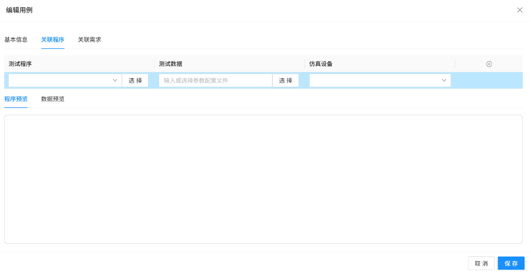 点击右上角"+"号会新增一条记录可以选择测试程序、测试数据、仿真设备,可绑定多个程序并行运行,如下图所示。