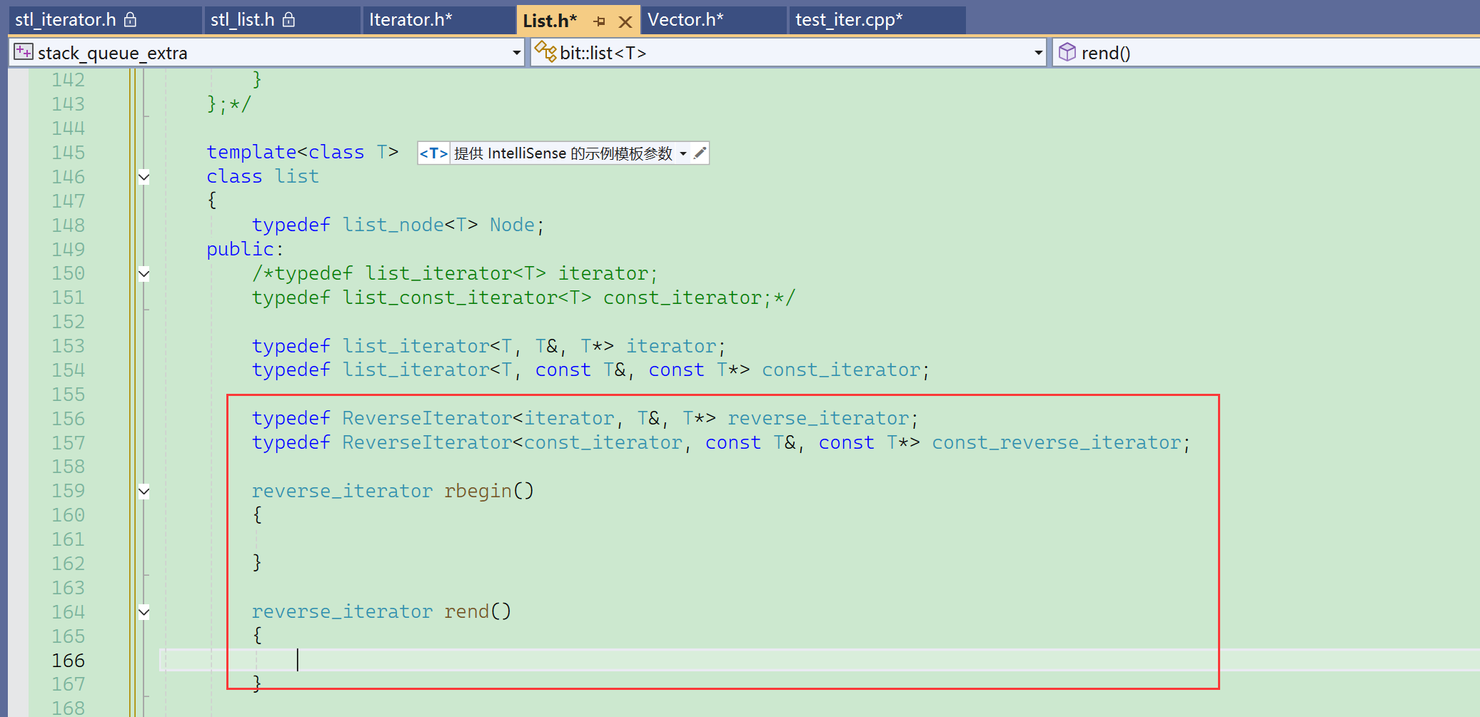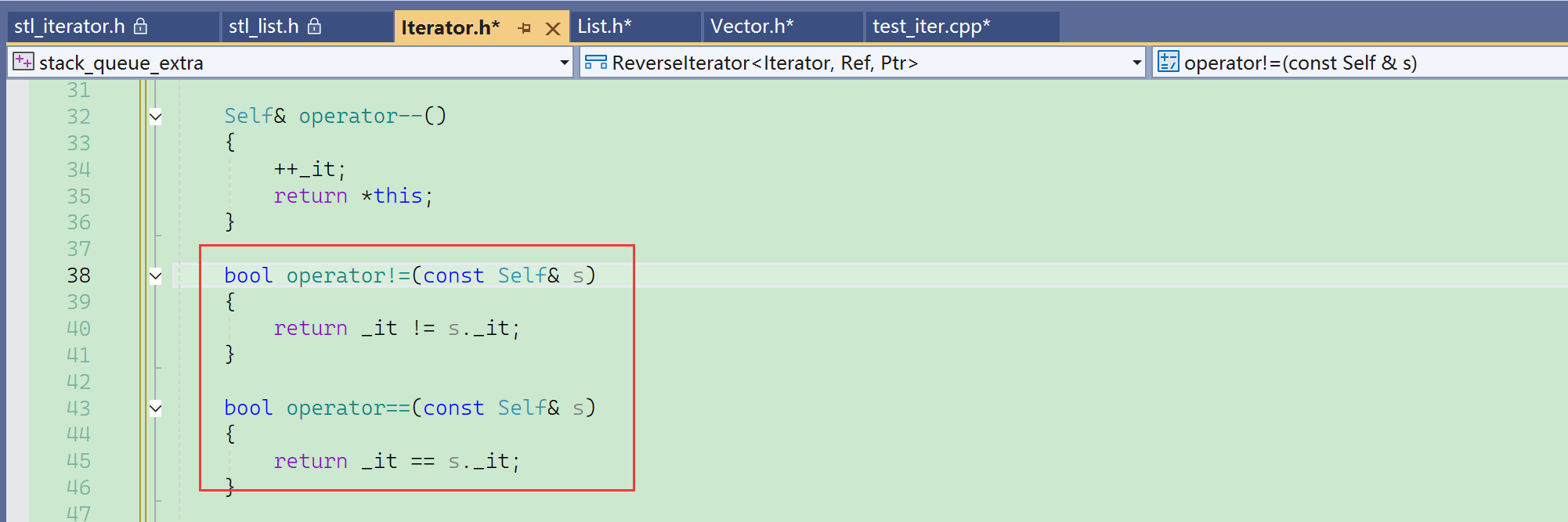 封装了之后去实现反向迭代器的各种接口: