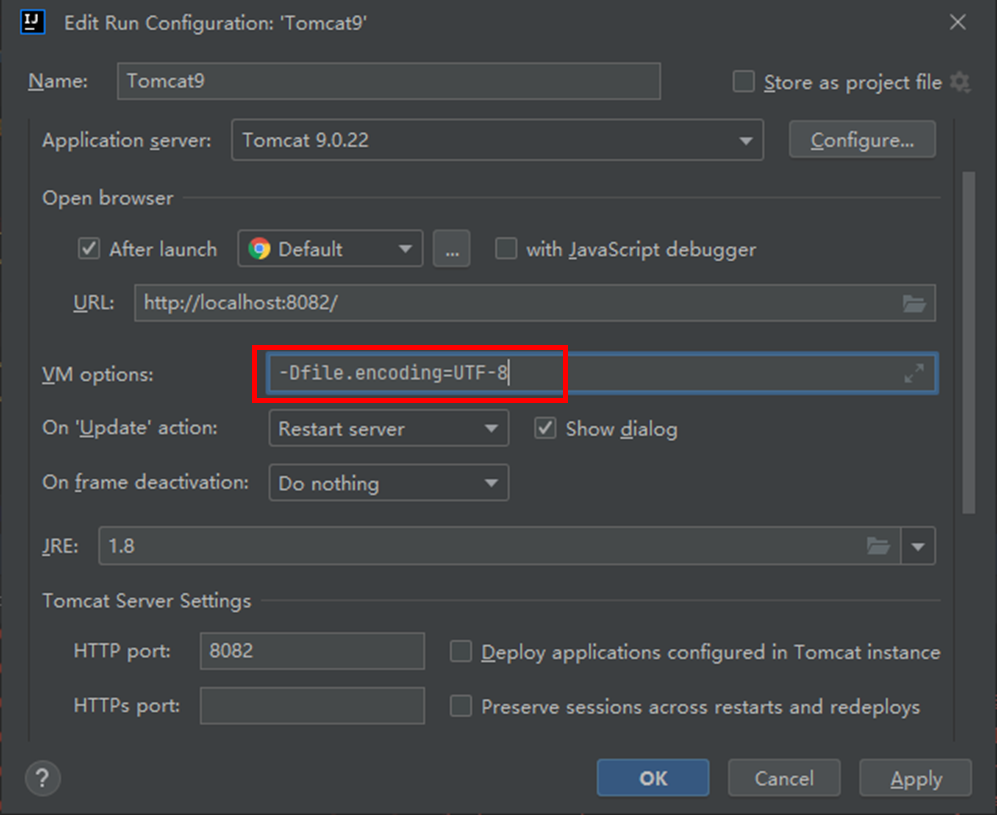 Run > Edit Configurations,在 Tomcat Server 的 VM options 中添加-Dfile.encoding=UTF-8