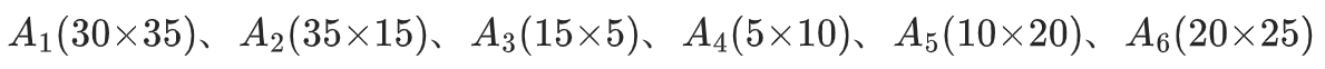 给定 n 个矩阵:A1,A2,...,An,其中 Ai 的维度为 pi−1×pi。求最优的加括号方式 ,使得所有矩阵相乘的总乘法次数最少。