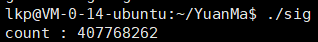 cpp// IO 少 #include <iostream> #include <unistd.h> #include <signal.h> int count = 0; void handler(int signumber) { std::cout << "count : " << count << std::endl; exit(0); } int main() { signal(SIGALRM, handler); alarm(1); while (true) { count++; } return 0; }实验现象