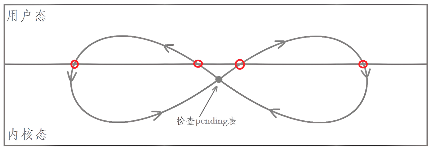 - 信号处理函数执行完毕后,会调用特殊系统调用再次进入内核态