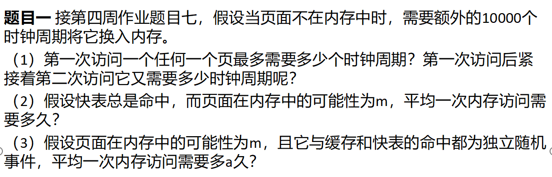 - 对应题目一中的 "页面不在内存中...额外10000周期"。