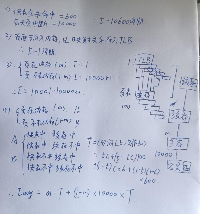 - 最后看 页面:在内存里吗?不在就要加"硬盘换入的时间"。