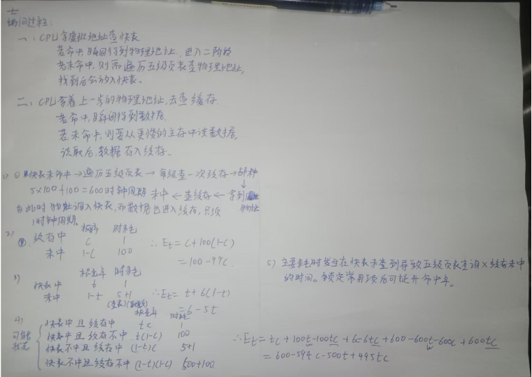 - 先看 TLB:命中了吗?没命中就要加"查页表的时间"。