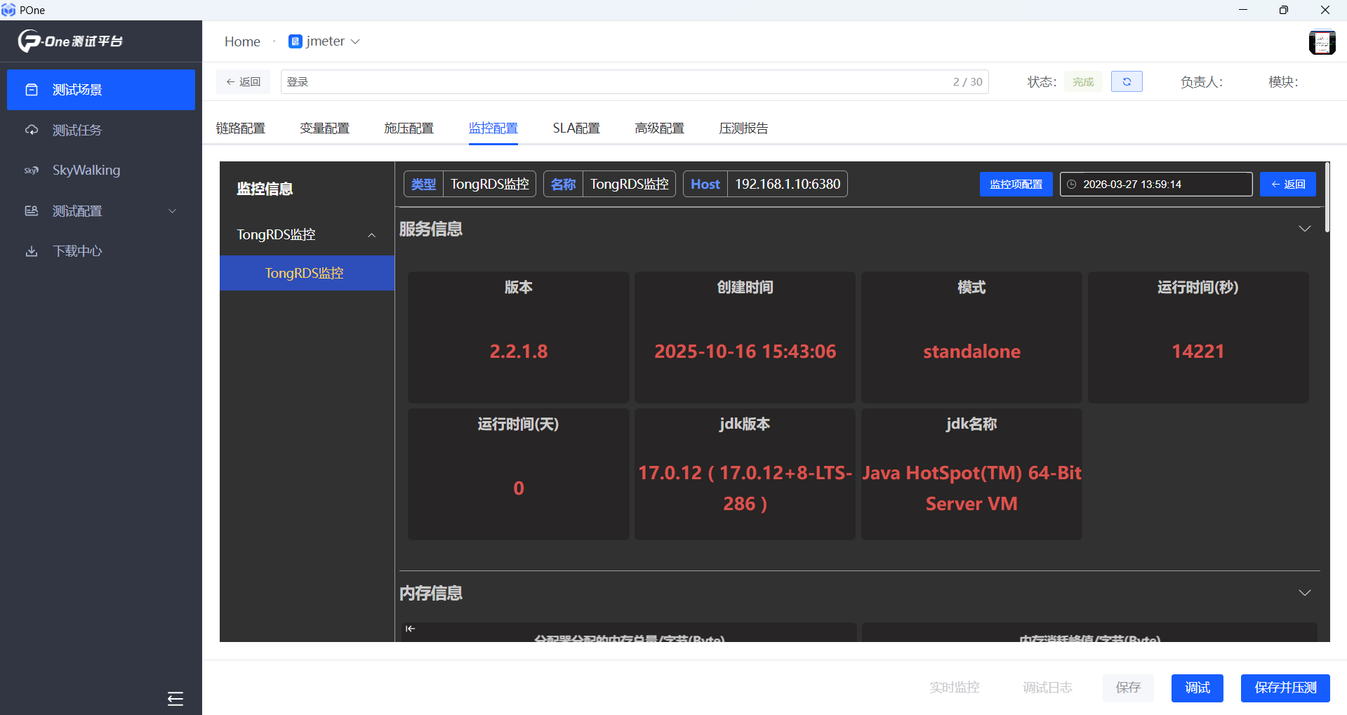泽众云旗下产品性能测试平台POne集管理、设计、压测、监控以及分析一体,2026年4月初,POneV2.0.6新版本正式发布,主要解决了Jmeter脚本自动转化POne脚本,以及探针监控支持OceanBase数据库和探针监控支持东方通TongRDS内存数据缓存中间件。