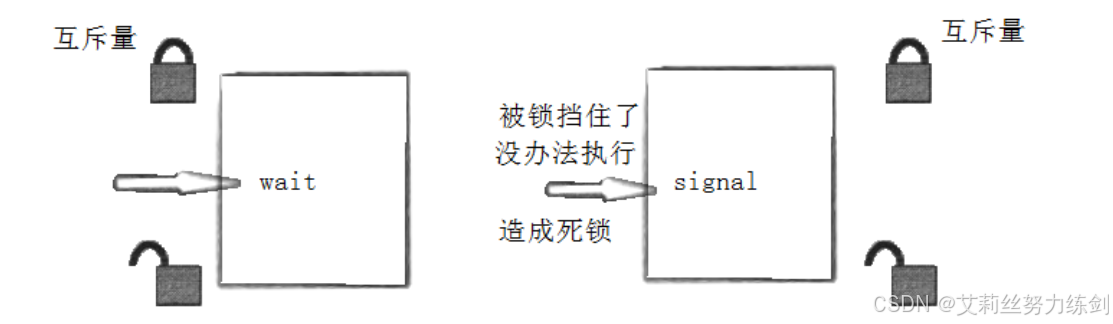 在互斥锁的逻辑中,如果一个线程持有锁进入临界区后直接阻塞(挂起),且不释放锁,就会导致死锁(其他线程无法进入临界区修改条件,导致持有锁的线程永远等不到信号)。