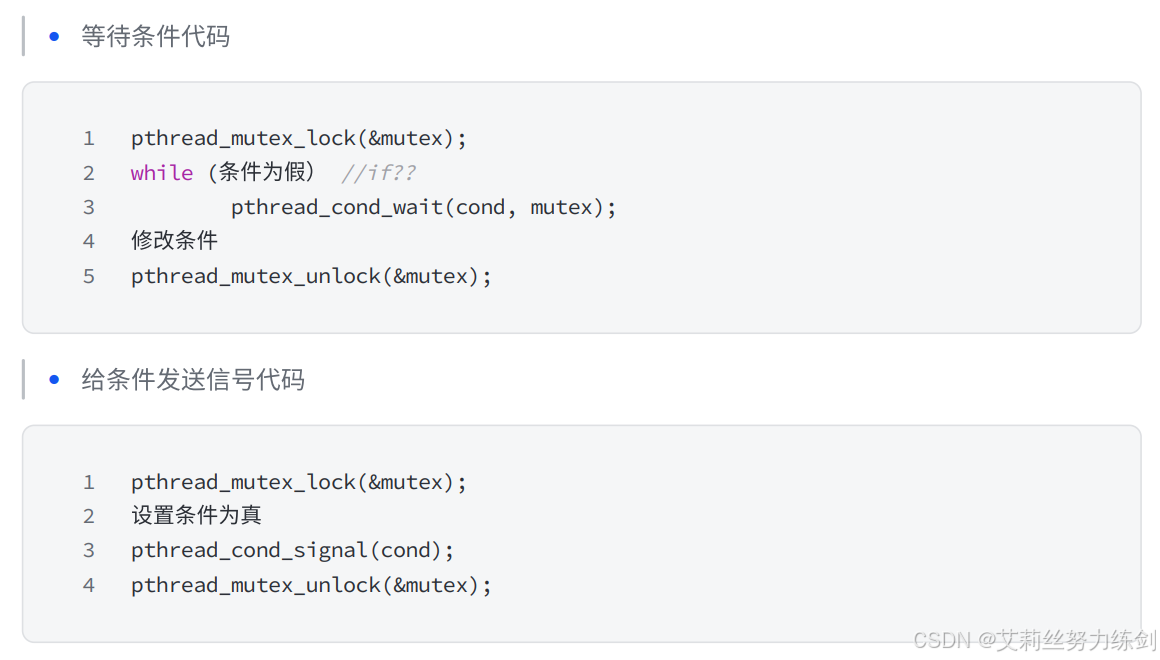 - [3.1.1 为什么pthread_cond_wait需要互斥量?](#3.1.1 为什么pthread_cond_wait需要互斥量?)