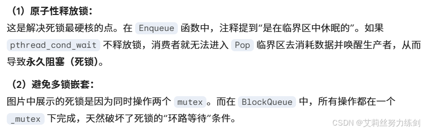 (2)硬核原理 : 该接口在底层设计上就是为了预防死锁 。它接收 _mutex 作为参数,并在线程进入等待队列的一瞬间,自动、原子地释放该锁。