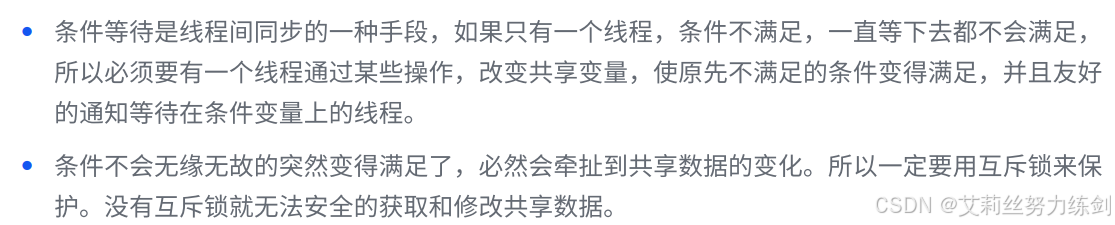// 1. pthread_cond_wait调⽤是: a. 让调⽤线程等待 b. ⾃动释放曾经持有的
