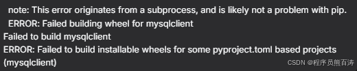 ERROR: Failed to build installable wheels for some pyproject.toml based projects (mysqlclient)