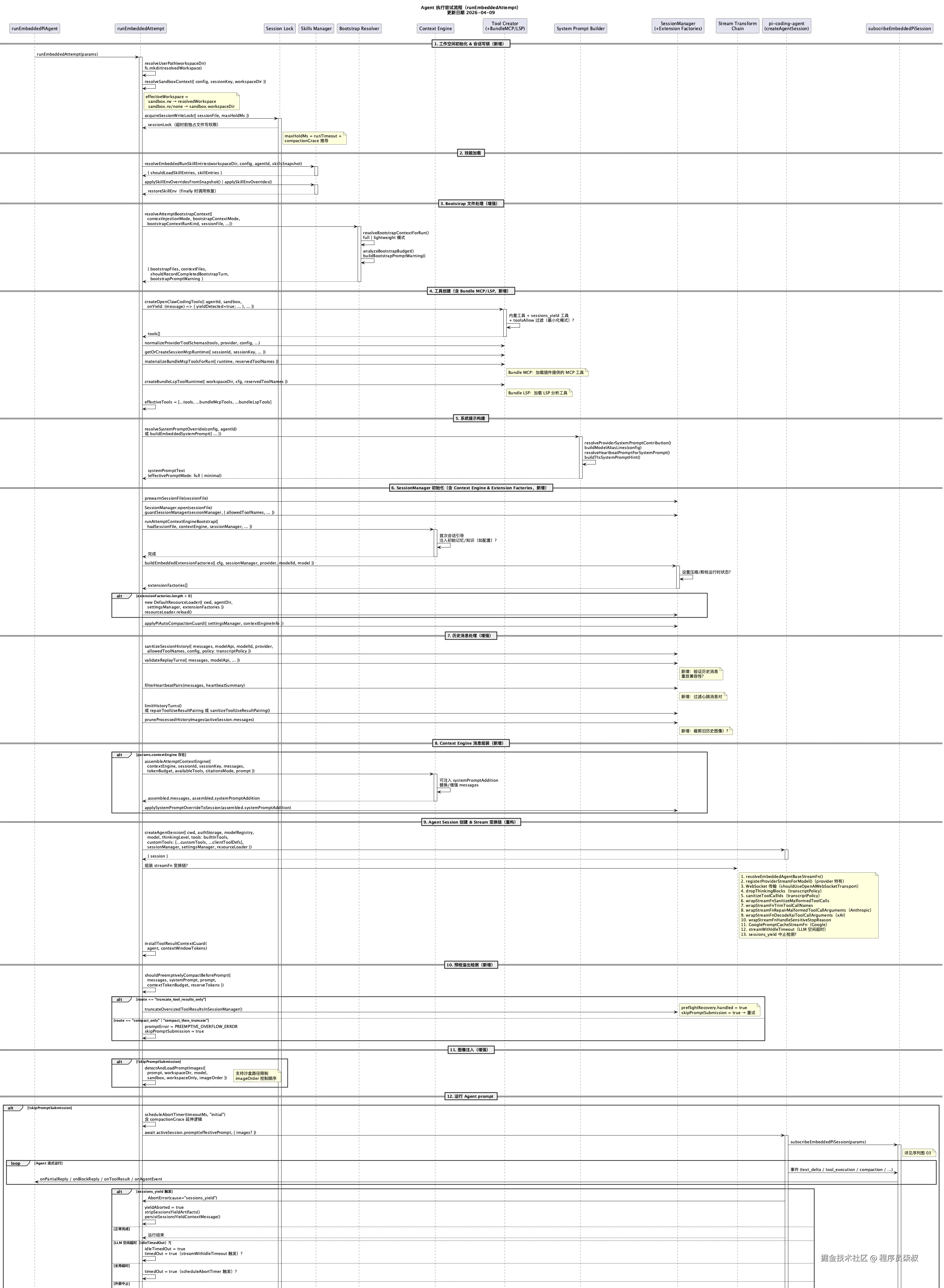 - Agent 执行: 运行嵌入式 Pi Agent,处理用户提示