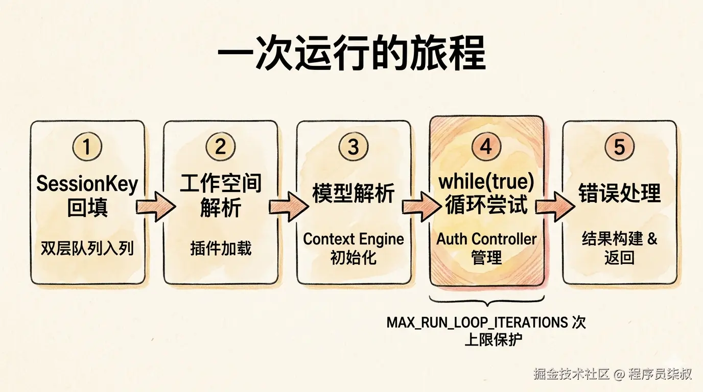 7. 循环尝试(while(true),上限 MAX_RUN_LOOP_ITERATIONS)