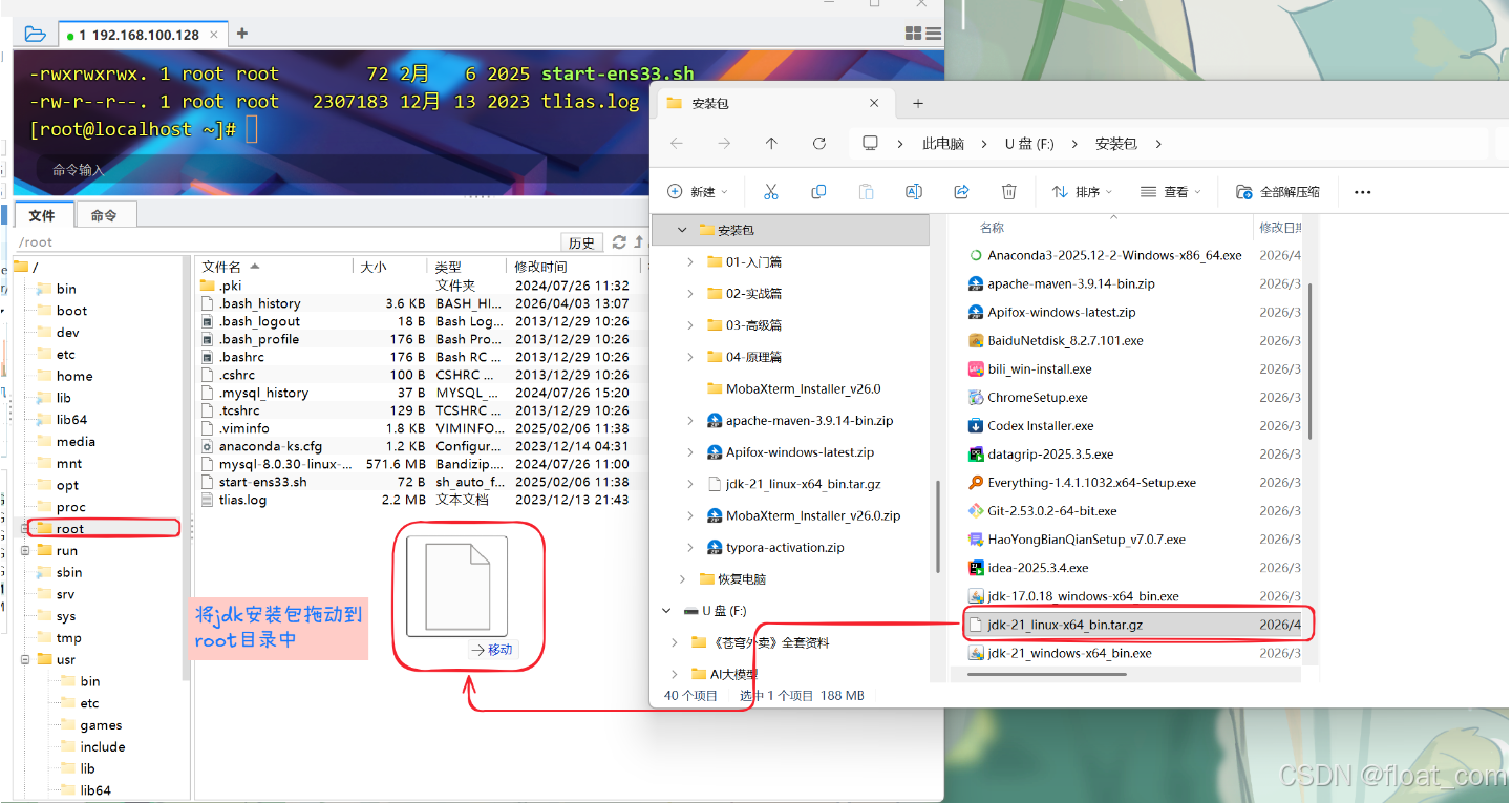 使用 FinalShell 拖拽上传 nginx-1.20.2.tar.gz 至 /root 目录。