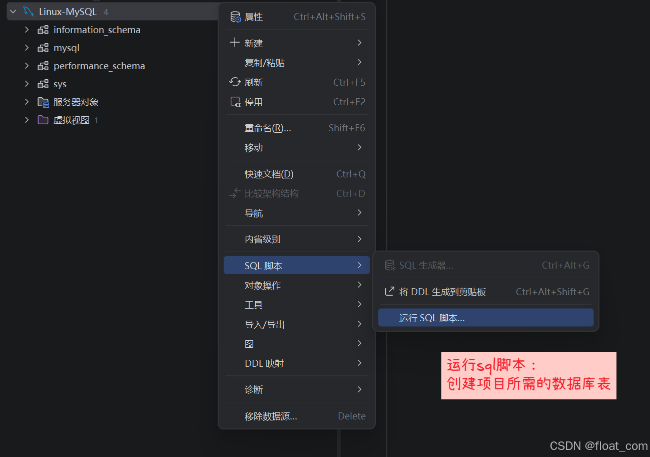 此时,你的开发工具已成功连接到 Linux 中的 MySQL,且项目所需的基础数据已准备就绪,可以开始后续的 Java 开发了!