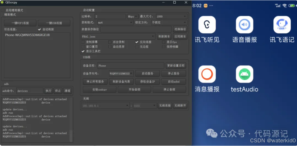 投屏软件: qtscrpy: https://github.com/barry-ran/QtScrcpy/releases