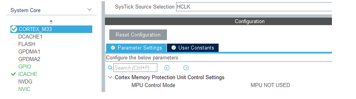 在System Core框架下,Cortex_M33标签页面下使用的是HCLK. 如下图: