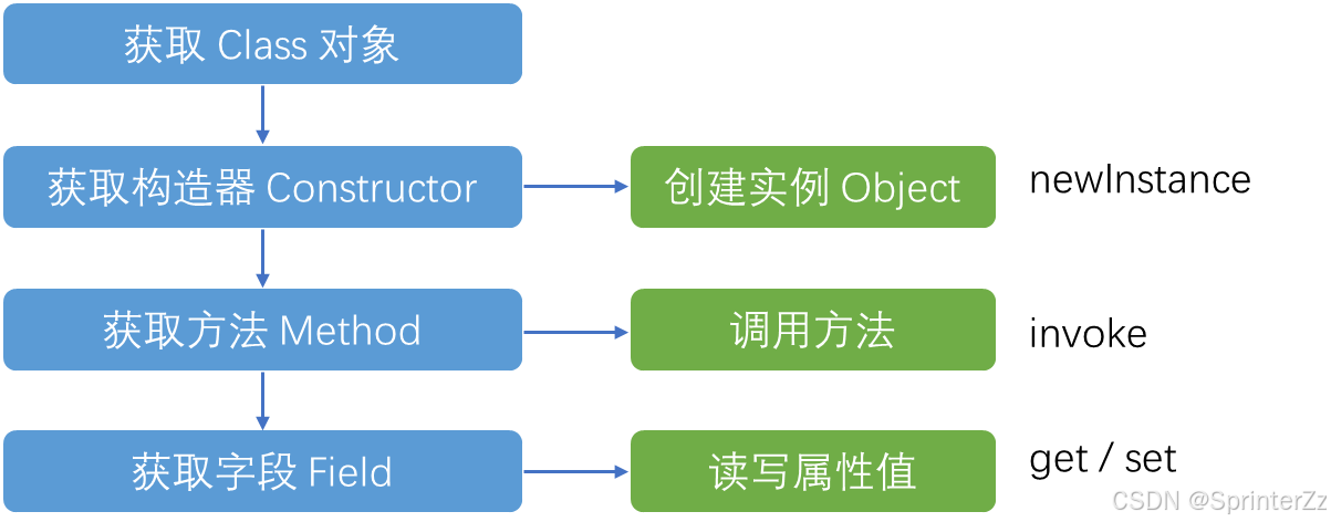 反射的主要功能集中在java.lang.reflect包中,包括Constructor、Method、Field三个核心类。